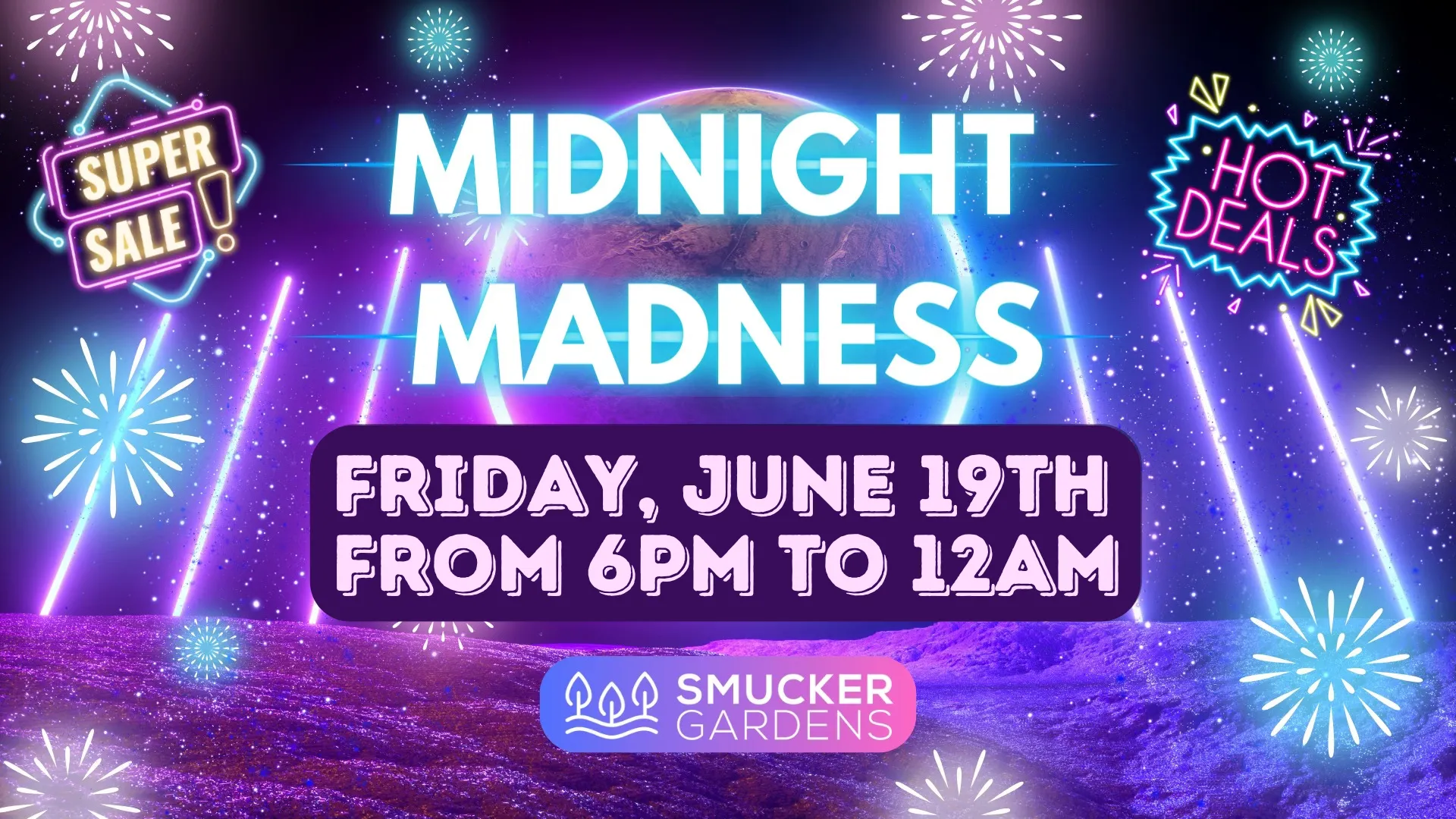 Join us for an unforgettable night ofΒ shopping, savings, and garden funΒ at our annualΒ Midnight MadnessΒ event onΒ Friday, June 19th from 6 PM to 12 AM!