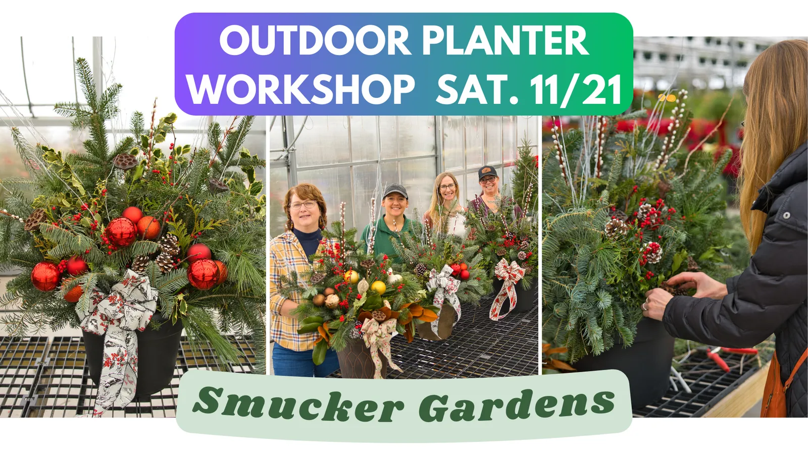 Create a festive outdoor winter planter with us! All materials included. Perfect for all skill levels. Register now as tickets are limited!